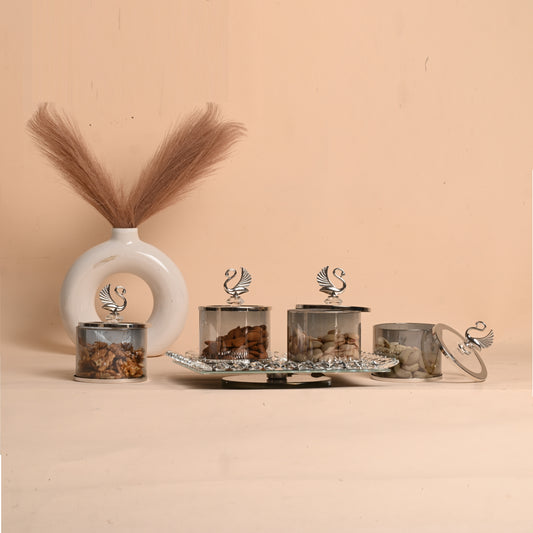 Sworovskii Crystal Dry Fruit Jar Set – Luxury Glass Containers with Decorative Tray