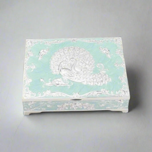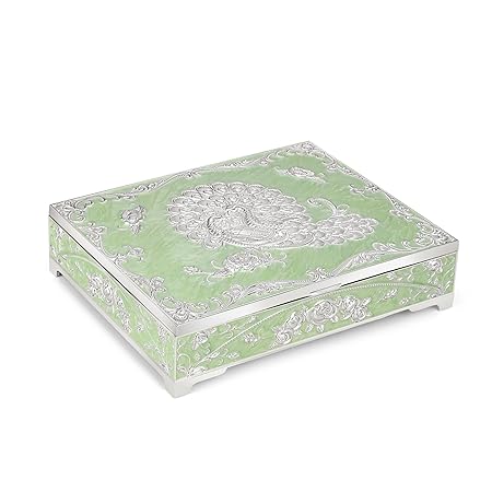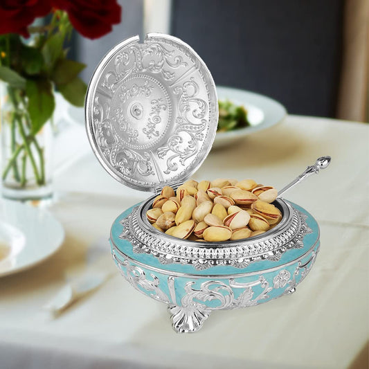 Enamel Peacock Sugar Pot / Candy Box / Dry Fruit Box With Lid - Green