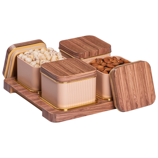 SELVEL Rosewood Airtight Dry Fruit Container Tray Set - 4 Pieces