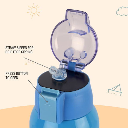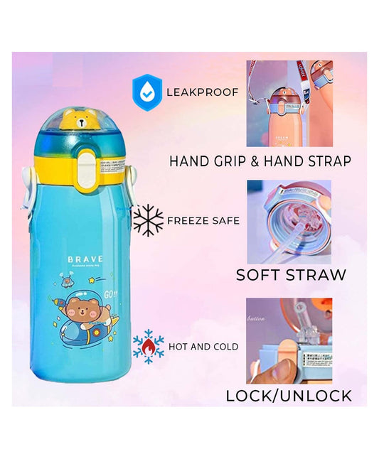 Stainless Steel Cartoon Print Water Bottle with Straw, Double Walled Vacuum Insulated - 530 ml