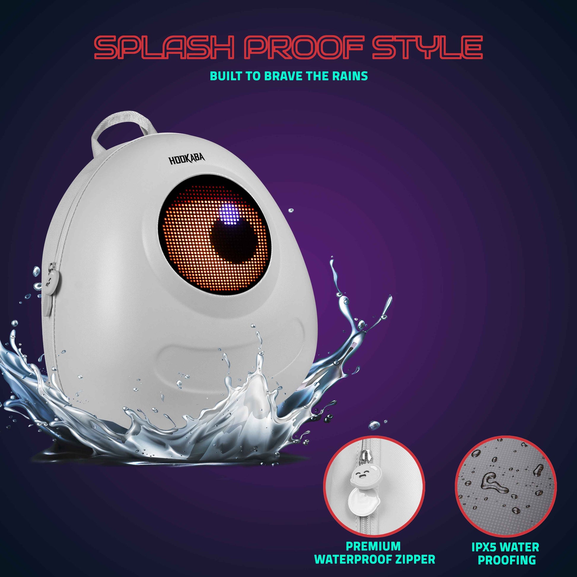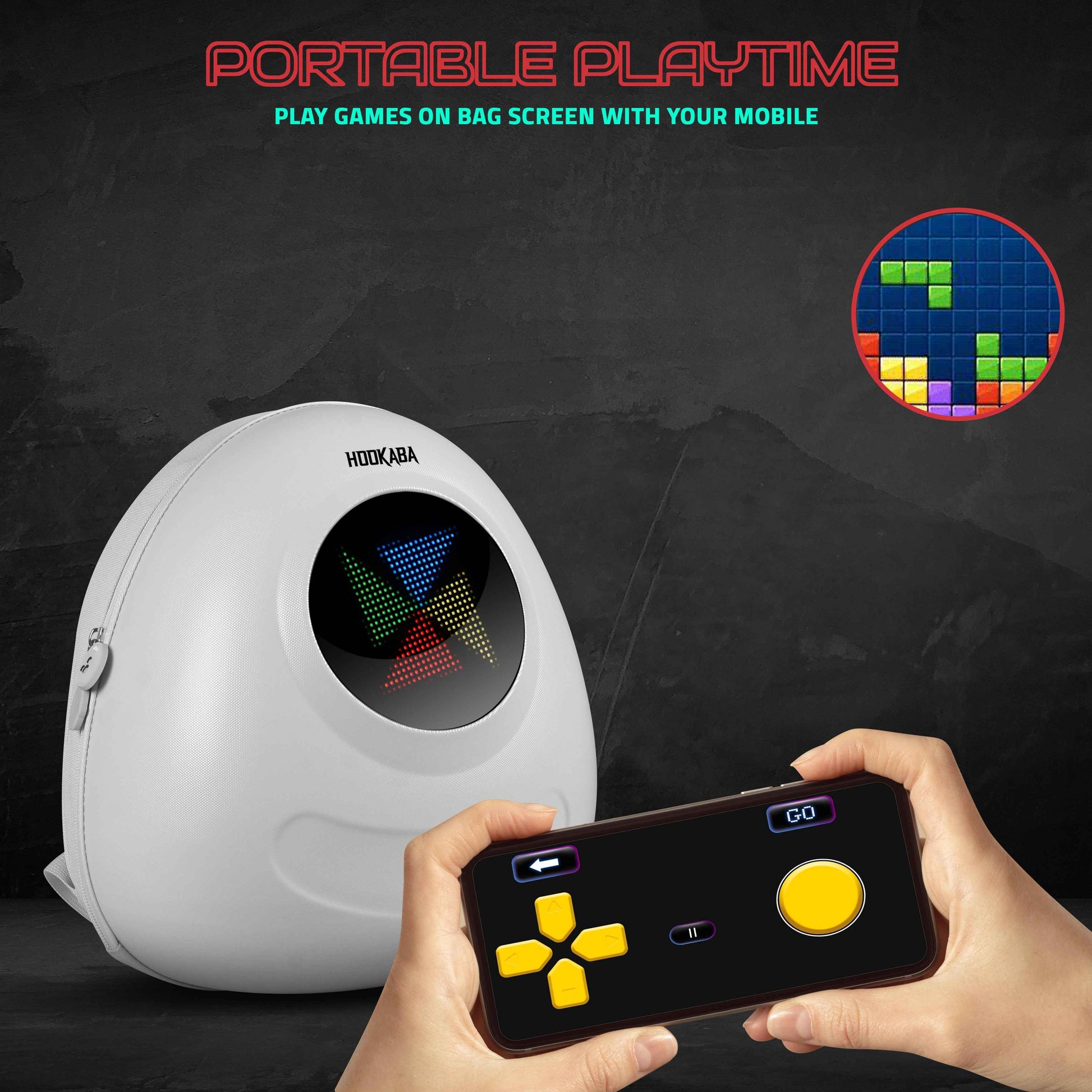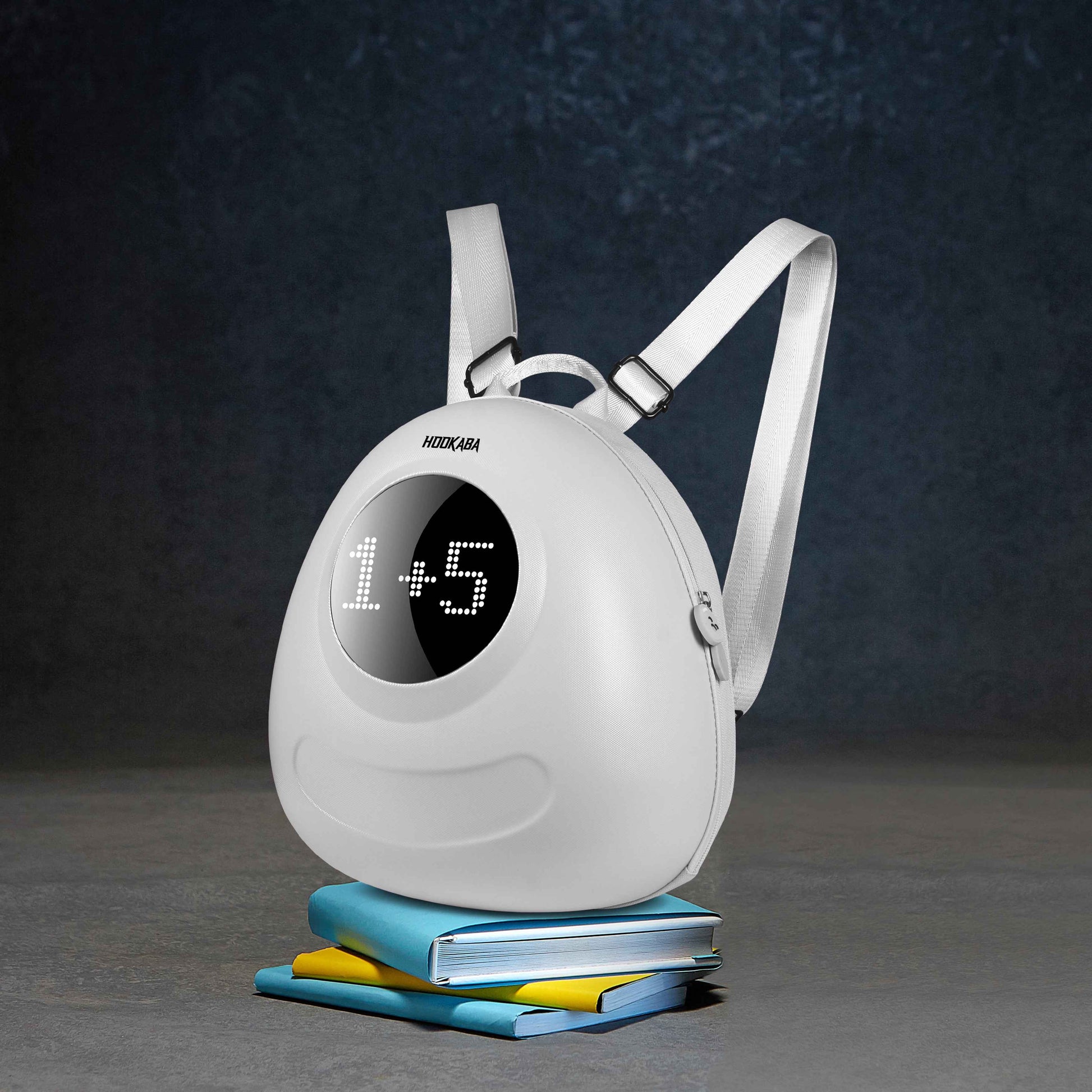 Hookaba GlowBuddy LED Kids Backpack (White) | Kids Smart Bag with App-Controlled Light-Up Display (With Power Bank)