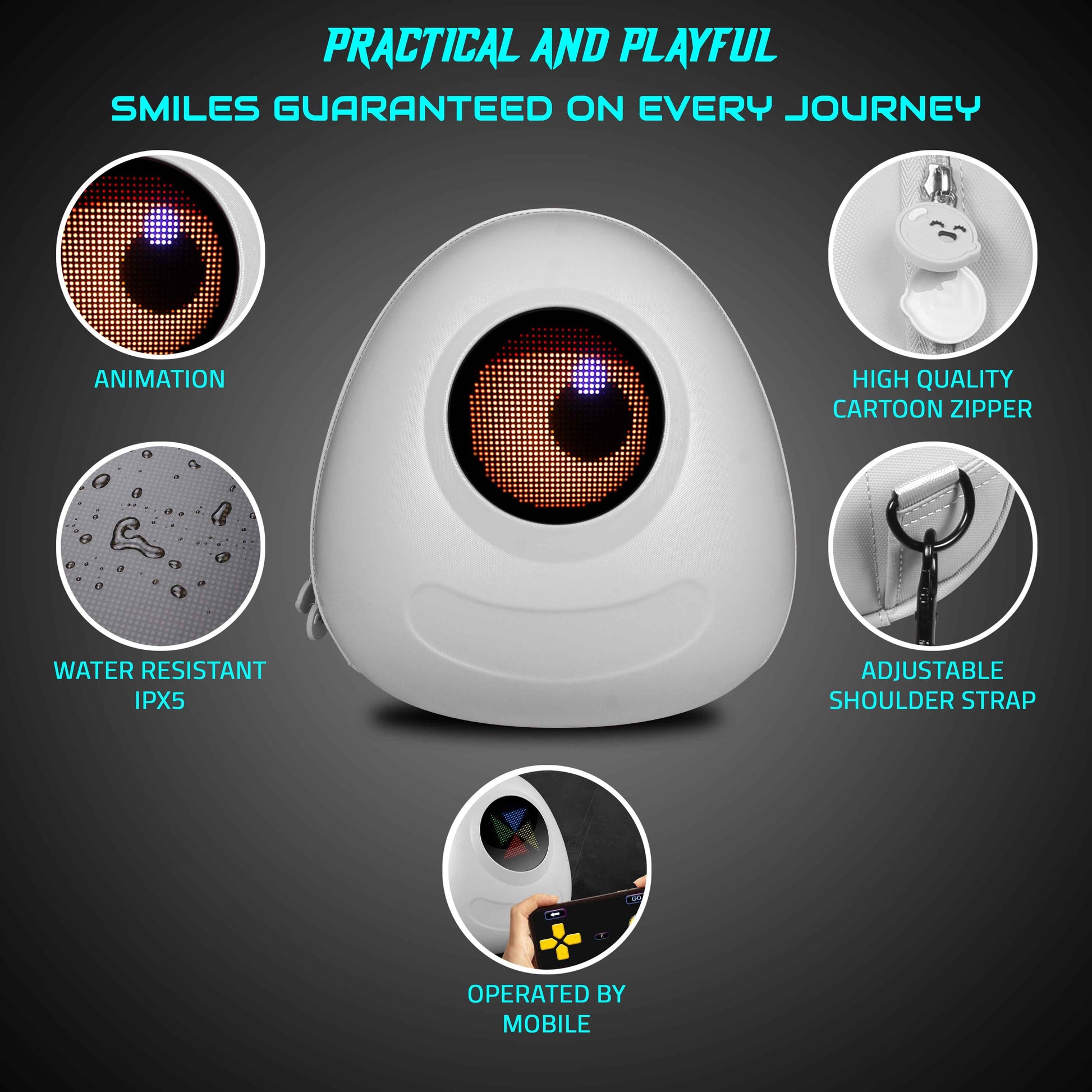 Once set, the bag displays animations automatically when powered—even if your phone is not nearby