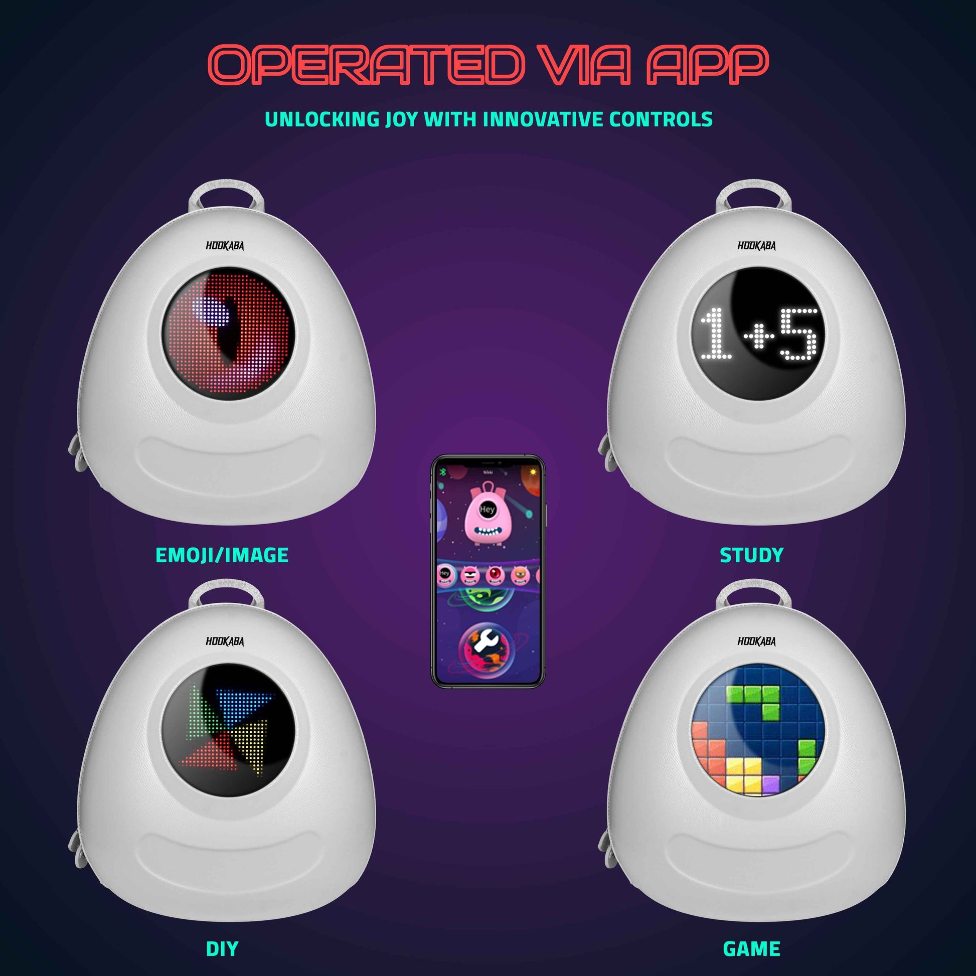 Let your child express themselves in style! The Hookaba GlowBuddy LED Backpack combines playful character design with a built-in LED display panel that can be controlled via smartphone app. Ideal for school, travel, and fun outdoor adventures.