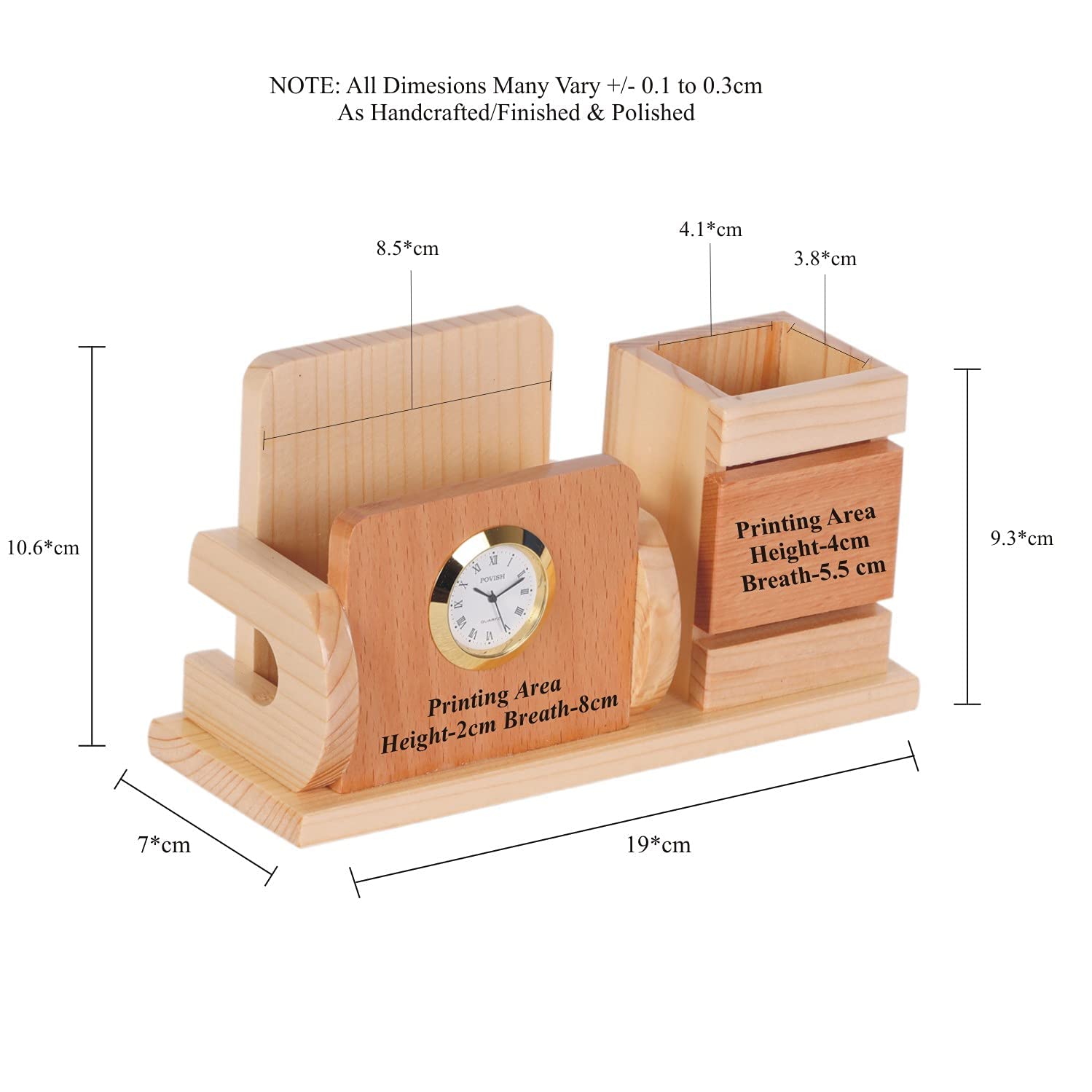 Personalized Wooden Pen Stand with Clock and Mobile Holder