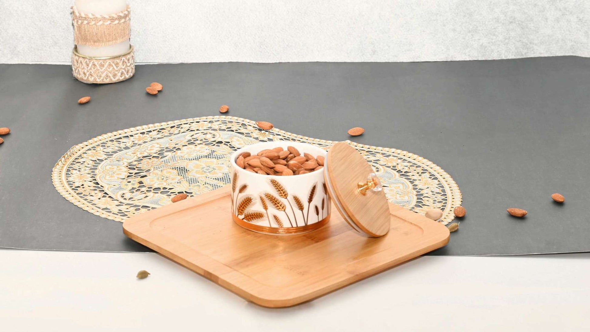 Ideal for storing dry fruits, nuts, candies, or snacks, this set doubles as a beautiful centerpiece for your dining table or kitchen counter. A perfect pick for festive gifting, housewarmings, or wedding hampers, it blends modern elegance with natural simplicity.